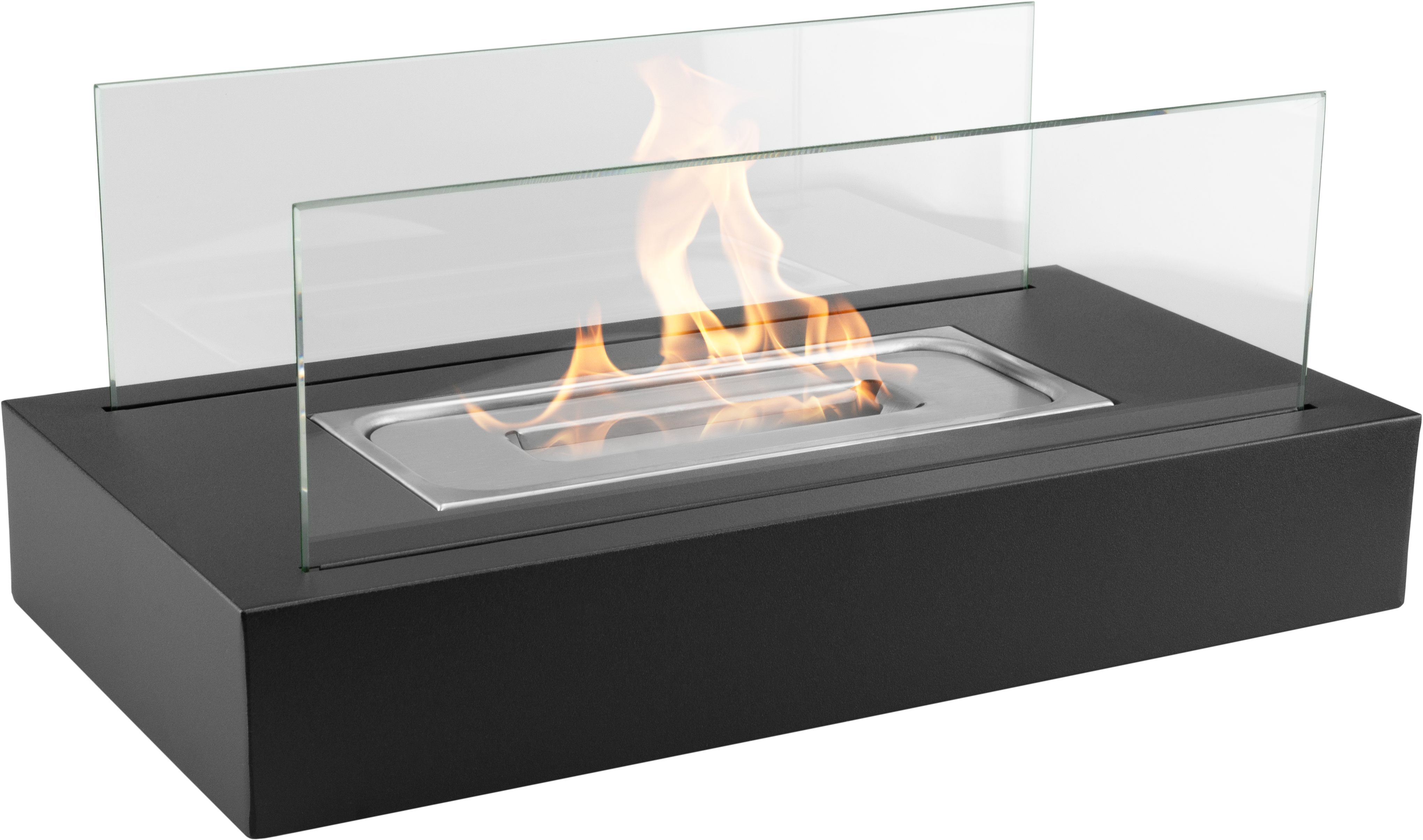 Solidna, wyważona podstawa zapewnia stabilność konstrukcji. Szklana osłona chroni płomień przed podmuchami powietrza, jednocześnie umożliwiając pełne podziwianie ognia. Prosty system użytkowania sprawia, że rozpalanie i wygaszanie kominka jest szybkie oraz intuicyjne.