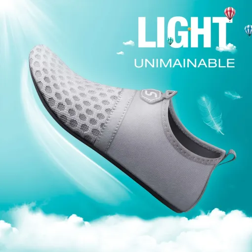 • Oddychalność i wygoda: Miękka i elastyczna cholewka wykonana z spandexu szybko schnie i dobrze dopasowuje się do stóp, zapewniając ogólne uczucie komfortu i ciasnoty. Gładka, elastyczna szyjka zapobiega otarciom i zapobiega zsuwaniu się buta podczas ćwiczeń.