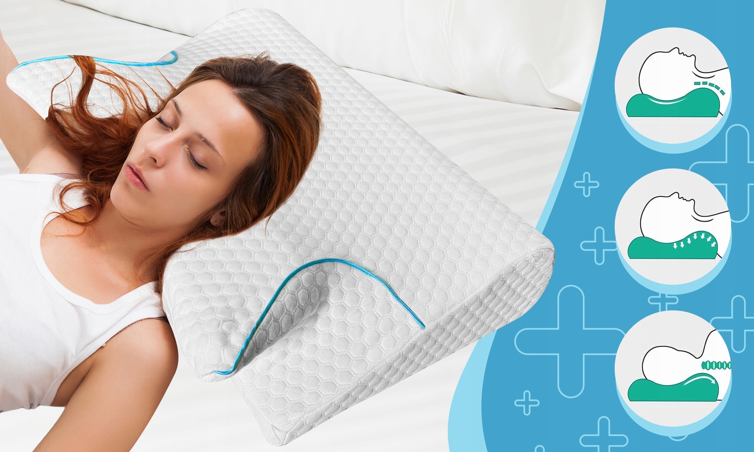 Ta poduszka z gęstej pianki memory dopasowuje się do naturalnych krzywizn ciała, rozkładając nacisk i poprawiając komfort snu.