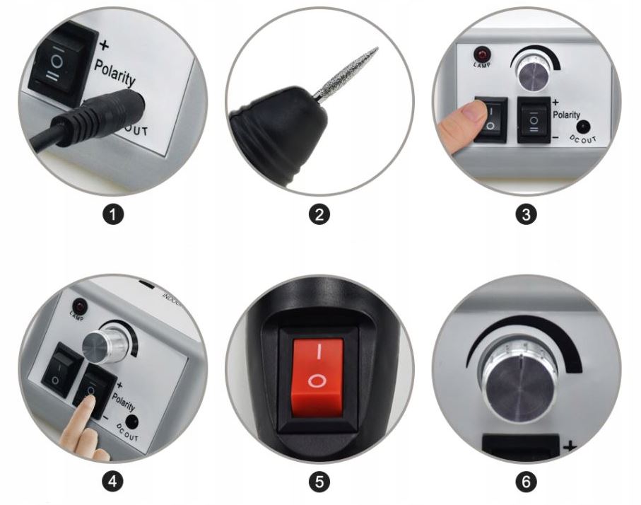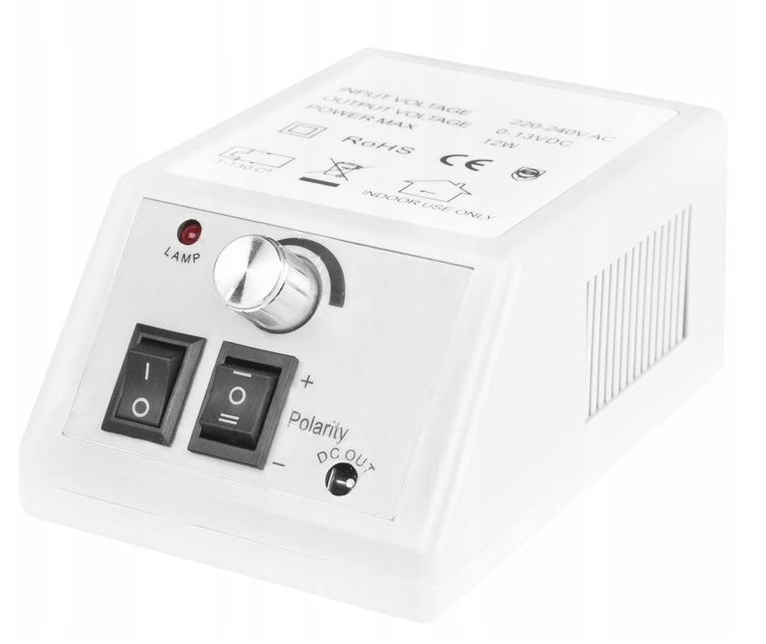 Profesjonalne urządzenie kosmetyczne dedykowane do zabiegów manicure i pedicure (stylizacja paznokci u stóp). Płynna i pełna regulacja obrotów odbywa się z poziomu urządzenia zasilającego elektryczną rączkę.