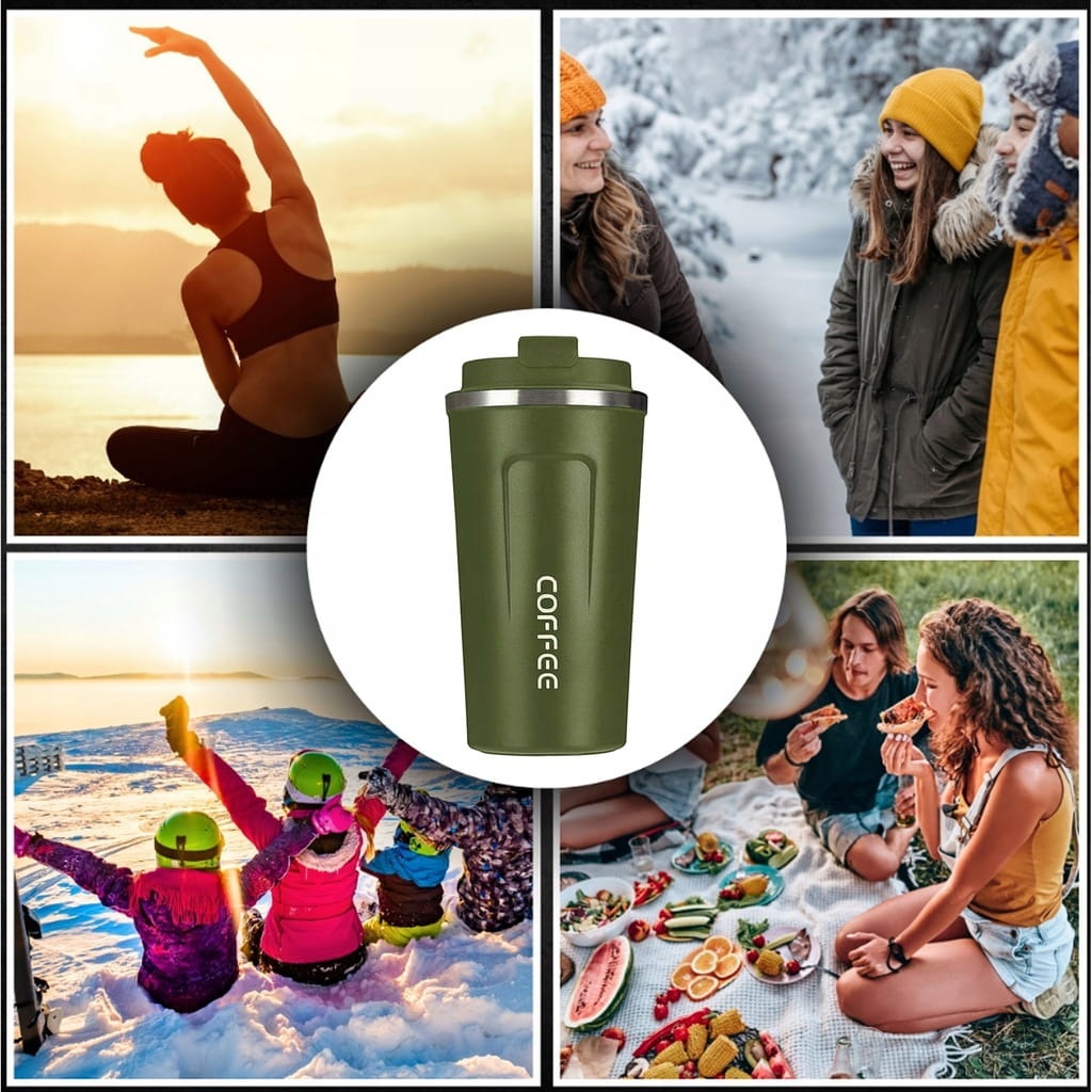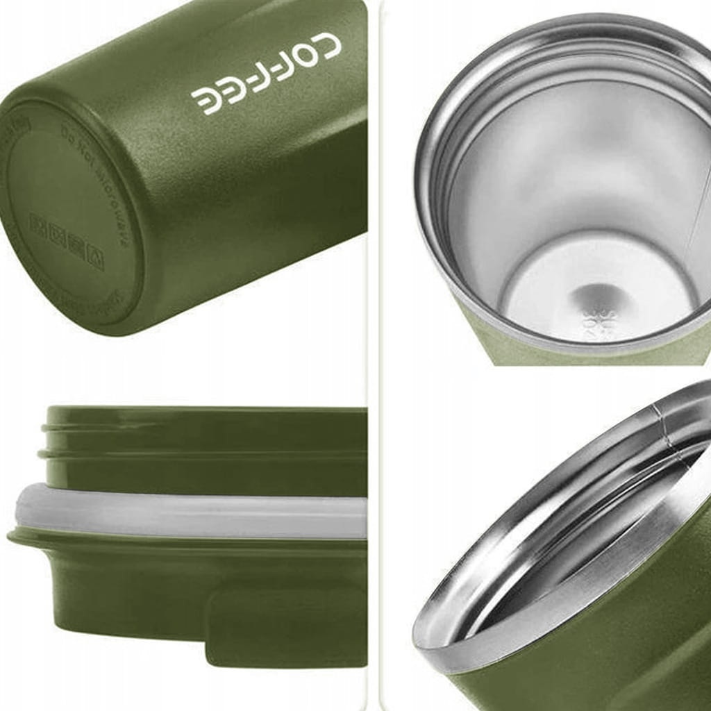Kubek termiczny wykonany ze stali nierdzewnej oraz solidnego tworzywa sztucznego. Bardzo pewnie trzyma się dłoni dzięki zastosowaniu matowego tworzywa oraz ergonomicznej konstrukcji. Posiada również pokrywę sterowaną wygodnym przyciskiem. Doskonale sprawdzi się do przechowywania zimnych oraz gorących napojów, dzięki dobrym właściwościom termoizolacyjnym.