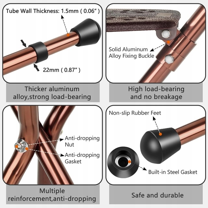 2w1 – laska i siedzisko: po złożeniu pełni rolę stabilnej laski, po rozłożeniu – wygodnego stołka.