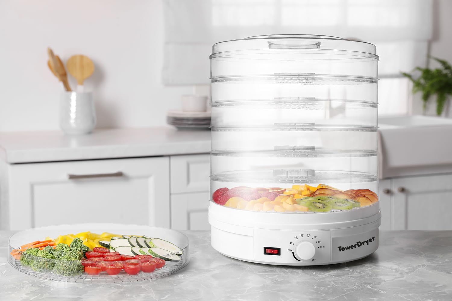 Moc: 500W - Suszarka zapewnia odpowiednią moc, by skutecznie usunąć wilgoć z produktów, zachowując jednocześnie ich wartość odżywczą.
