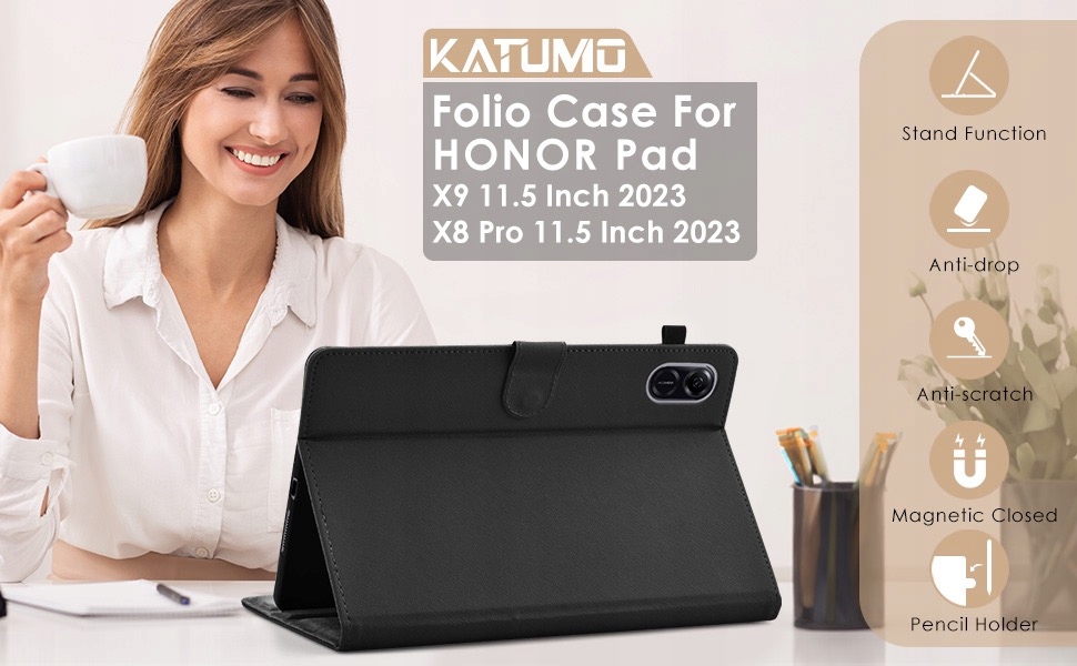 Etui na tablet z systemem Android HONOR Pad X9 11,5-calowy 2023 z wysokiej jakości sztucznej skóry, trwałe z miękkim i antypoślizgowym wnętrzem. Zapobiega odciskom palców, zabrudzeniom i zadrapaniom.