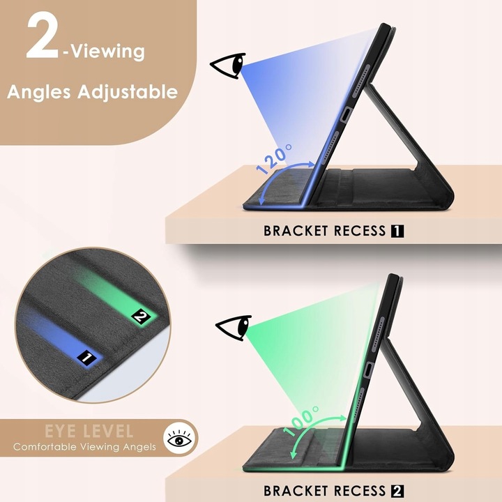 Etui do regulowanego tabletu o różnych wygodnych kątach można ustawić w trybie stojącym, sprawia, że tablet działa jak laptop, więc jest idealny do pisania i oglądania filmów.